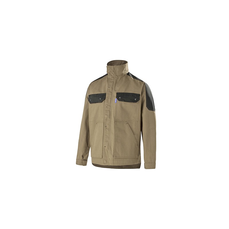 Col montant fermé par pressions. Fermeture à glissière plastique sous-patte. 2 poches poitrine plaquées à rabats fermés. 1 poche portable. 1 poche intérieure fermée. 2 poches basses plaquées. Soufflets dos. Poignets fermés par pressions. Empiècements épaules et hauts de manche. Dos plus long. Mercerie tout plastique.